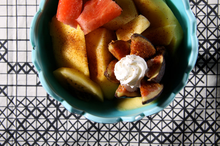 Figaro´s mix, fruitsalld with figs, watermelon, kiwi, peach and cream